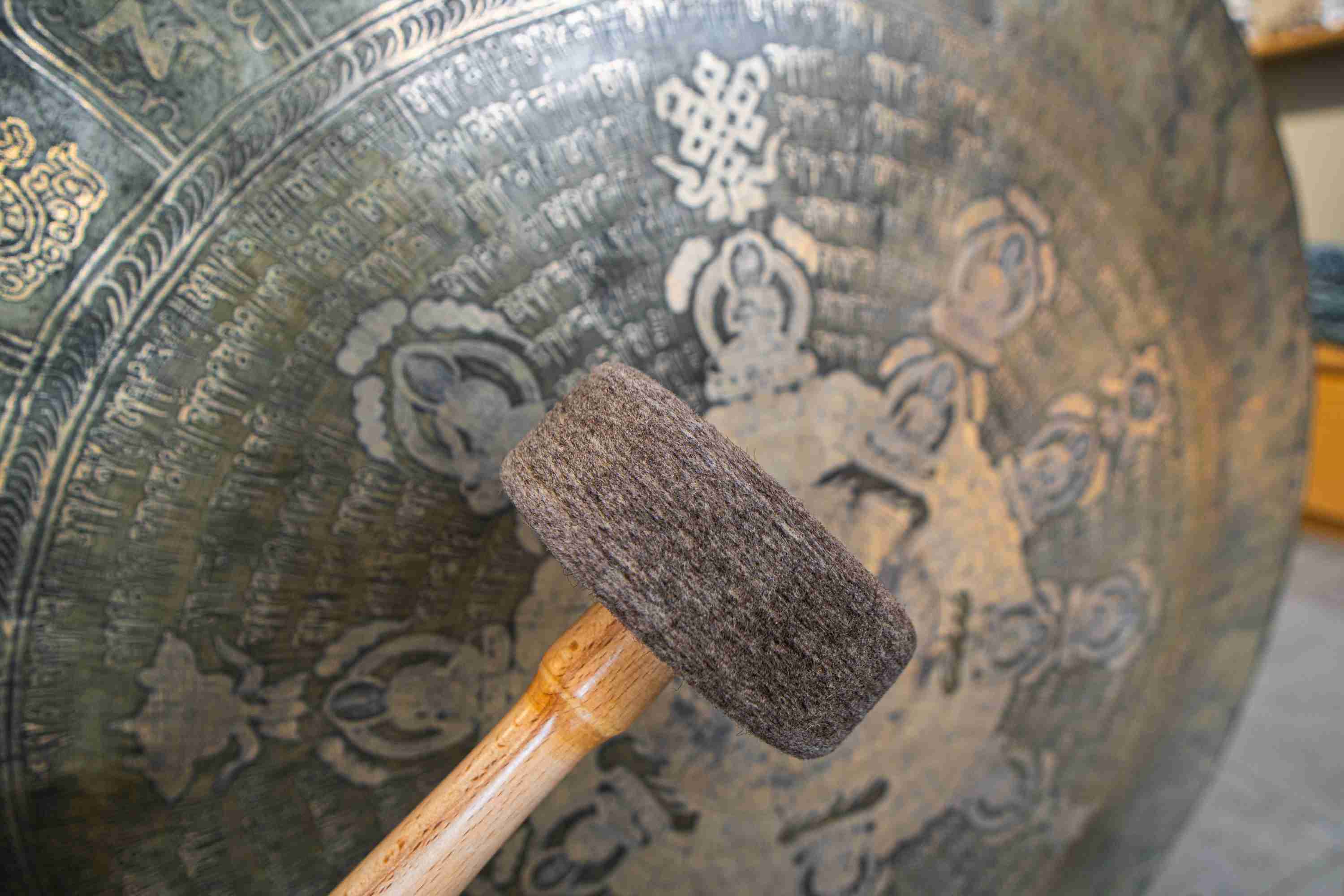Pro hraní na gong se používá dřevěná palička, který je ukončena filcem. Při nákupu gongu obdržíte i paličku.