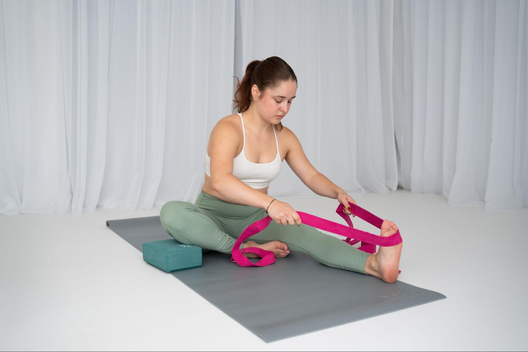 Doporučené pomůcky: jóga pásky, měkké jóga bloky a deky pro pohodlné relaxační pozice.