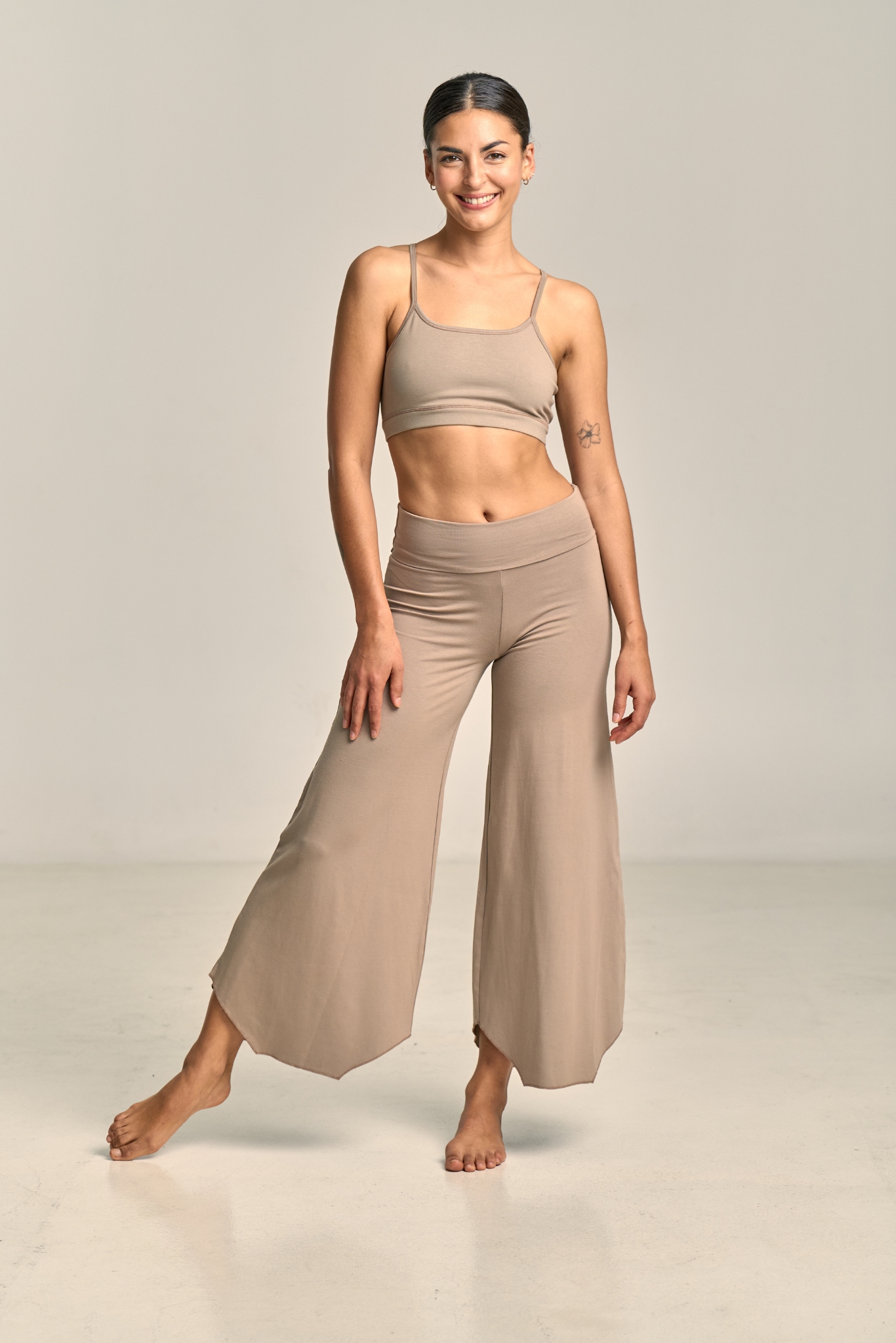 „Maya“, což v sanskrtu znamená „iluze“, inspiruje tyto splývavé kalhoty se širokými nohavicemi, které přinášejí ladnost a lehkost každému pohybu. Jsou vyrobeny z charakteristické bambusové tkaniny s příměsí elastanu, jsou 100% přírodní, měkké a prodyšné – ideální pro vaše cvičení jógy nebo den plného vědomí.